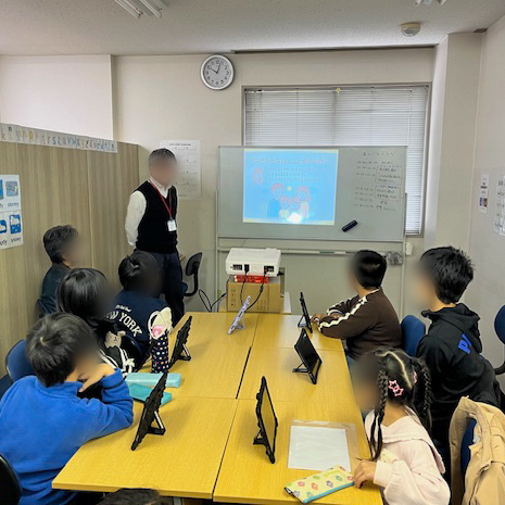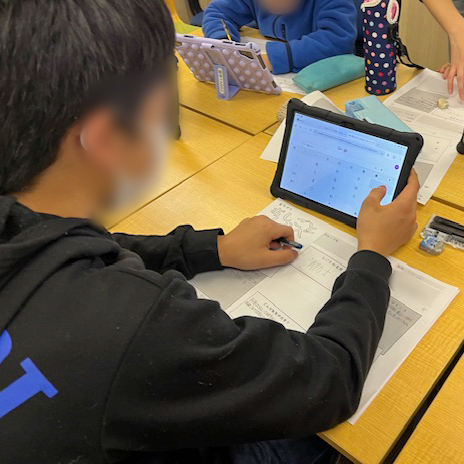 班に分かれてさまざまな職業を挙げ、意見を出し合ったあと、タブレットを使って具体的に調べました。